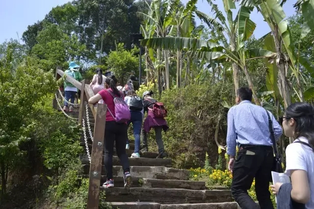 就這樣大家經(jīng)過(guò)將近兩小時(shí)的攀登,到達(dá)了山頂,感受這“會(huì)當(dāng)凌絕頂,一覽眾山小”般的視覺(jué)盛宴