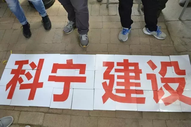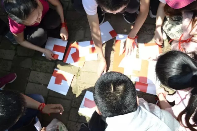 最后一個(gè)環(huán)節(jié)當(dāng)然是不能錯(cuò)過(guò)的拼圖。由于在上一環(huán)節(jié)中兩個(gè)小組雖經(jīng)過(guò)不懈努力但打成了平手,所以大家決定用拼圖來(lái)一決高下。哪組最先拼出“科寧”或者“建設(shè)”則勝出?!伴_(kāi)始”聲還沒(méi)完全落下,兩組已經(jīng)手忙腳亂的拼自己手上的字塊